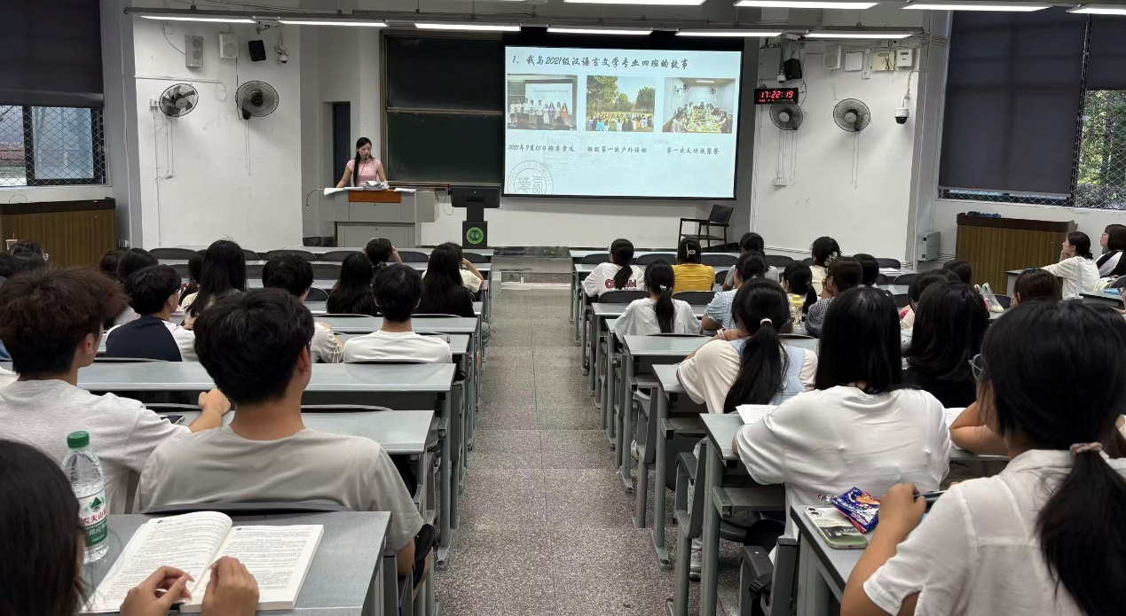 9月15日下午,bw西汉姆联2025级汉语言文学专业在6B101教室举行新生分享会,邀请2021级优秀校友邱母阿散莫为新生分享大学规划与学习经验,辅导员任焦阳及全体新生参会。