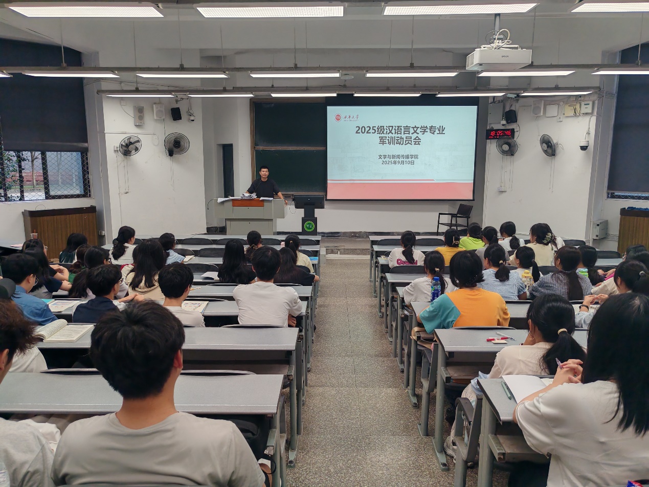 9月15日晚,学院2025级汉语言文学专业新生军训动员大会在6B104教室举行。辅导员任焦阳主持本次大会,全体2025级汉语言文学专业新生参加。