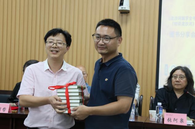 分享会伊始,浙江大学出版社编辑罗人智与海南出版社北京分社社长彭明哲分别代表两家出版方向西华大学图书馆赠送了《流沙河解字全书》和龚明德所著《初读流沙河》。不仅丰富了我校馆藏资源,也为广大师生接近经典、深入了解传统文化提供了重要途径。