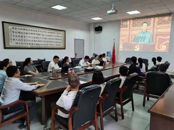 庆祝中国共产党成立100周年大会于7月1日上午在北京天安门广场隆重举行,中共中央总书记、国家主席、中央军委主席习近平发表重要讲话。按照学校有关通知要求,学院党委委员、各支部书记及师生党员代表等在学院会议室集中收看大会实况直播。