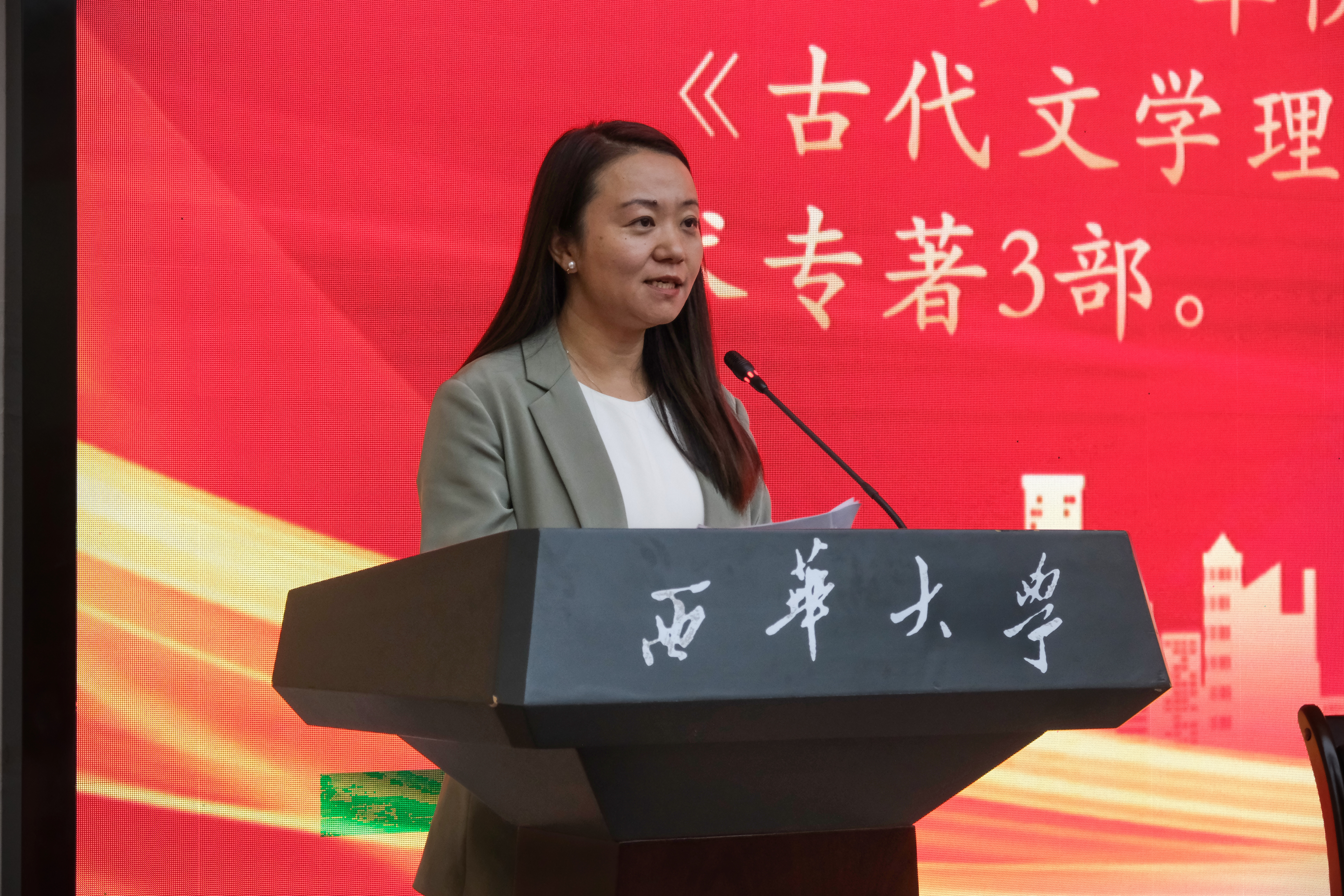 文化产业系博士、副教授、硕士生导师王贞贞老师作为教师代表发言,她讲到同学们在面对未来的不确定性时,唯有持续学习、主动思考、敢于创新,才能锻造核心竞争力。她希望新生在未来四年里,能收获“源于内心丰盈的快乐”,而非短暂的感官满足。