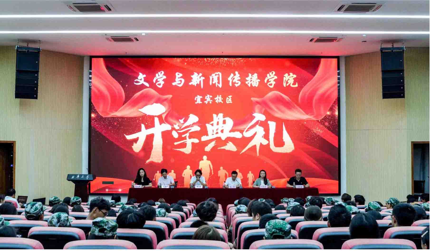 金秋送爽,丹桂飘香。2025年9月25日下午5时,我院宜宾校区2025级开学典礼温情启幕,学校党委常委、副校长费凌教授、学院副院长王学东教授、传媒系副主任赵凌之、文产系副教授王贞贞和学院辅导员及全体2025级新生齐聚在第一教学楼101报告厅,共同翻开成长新篇章,典礼由学院党委副书记徐攀主持。