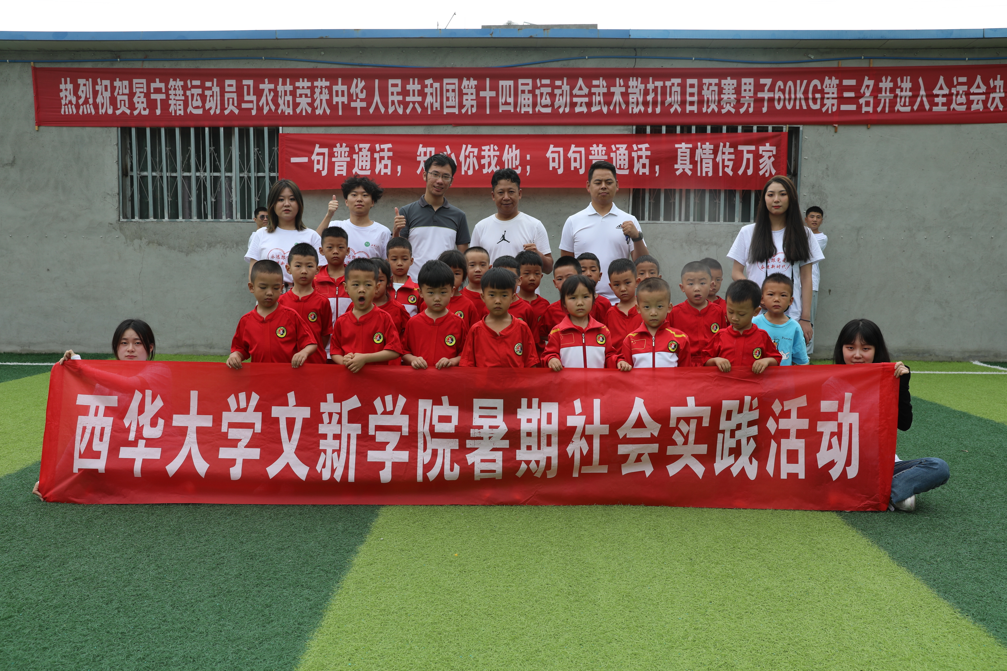 (实践队与武术散打训练中心学前儿童合影)