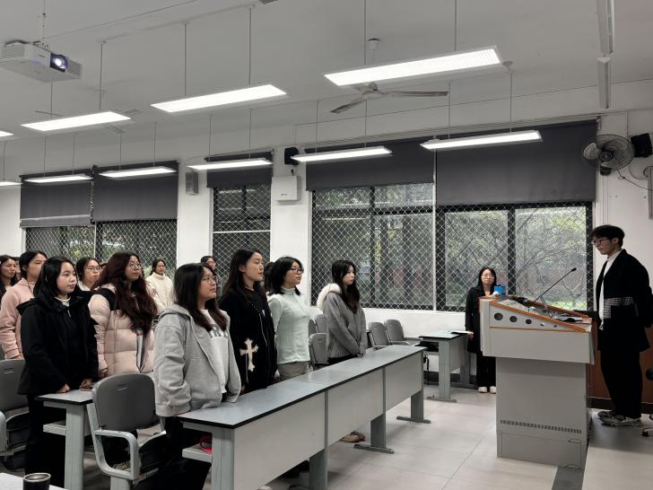 会议开始后,参会人员齐唱国歌。随后,学院组织部部长郭汶昊分别介绍参与本次学生代表大会学生代表选拔各候选人基本信息。