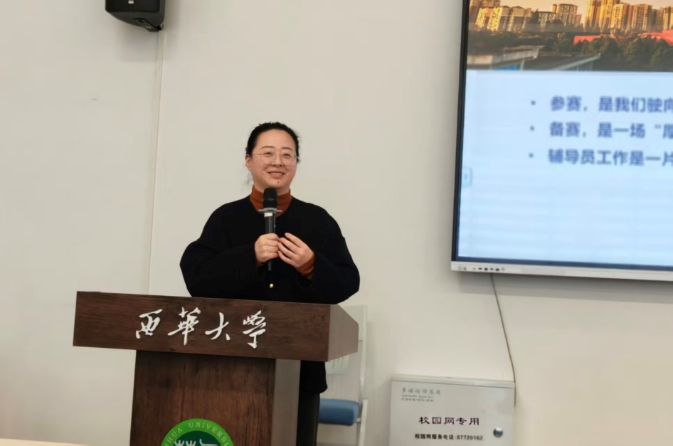 程曦老师从大赛整体回顾、辅导员心理育人职能及个人思考三方面展开,重点解析了“四位一体、三纵四横”心理育人工作体系。她首先强调与学生建立真实链接、实现深度共情的重要性,接着分享了心理危机处理的基本原则,为辅导员开展心理育人工作提供了可操作的思路。