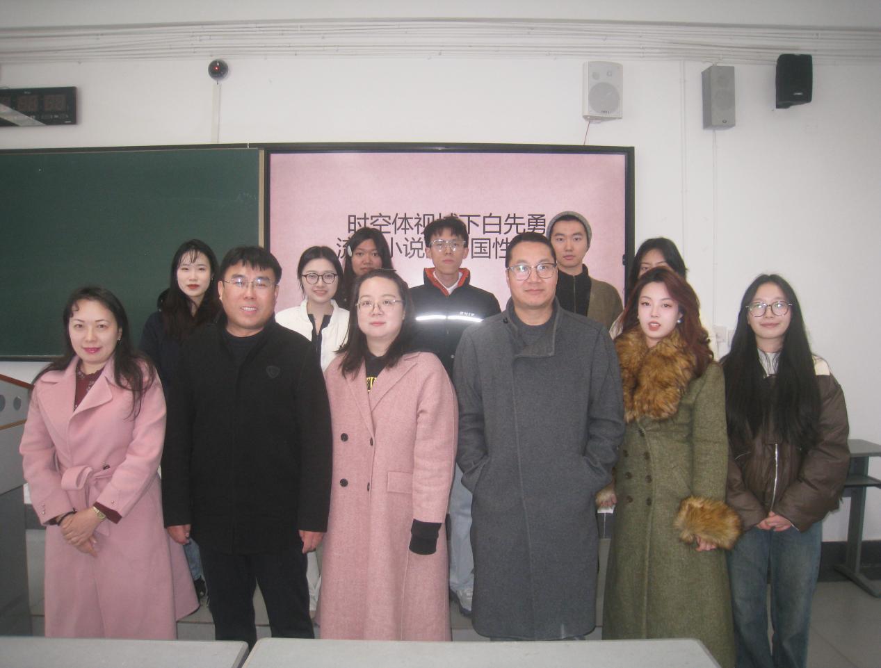 蒋林欣、王方、党文静、左存文老师与现当代文学同学合影