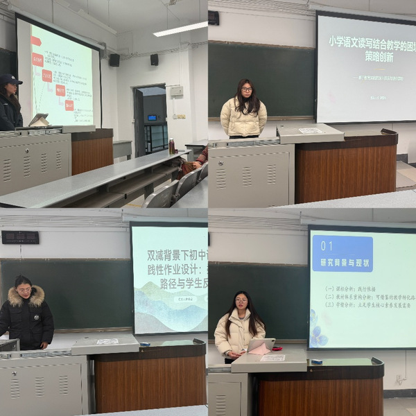 除此之外,李维怡、张晓锦、汪叶枫、吴柔、罗雪梅、薛莹莹等同学围绕接受美学、古代写作理论、小学与初中语文教学策略、整本书阅读实施、双减背景下作业改革等主题展开报告,进一步展现了本专业研究方向的多样性与实践价值。