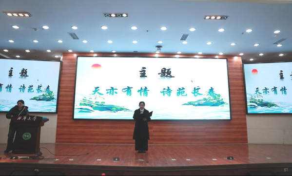 原创赛道决赛以天亦有情,诗苑长春”为主题,在图书馆报告厅一厅举行。国家级普通话测试员杨绍林、bw西汉姆联副教授王珂担任评委,罗岚心主持。