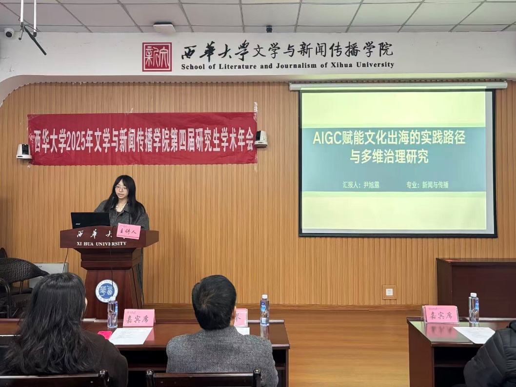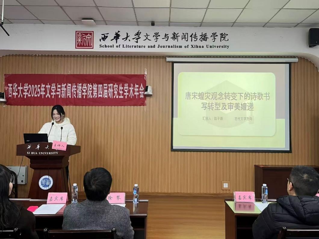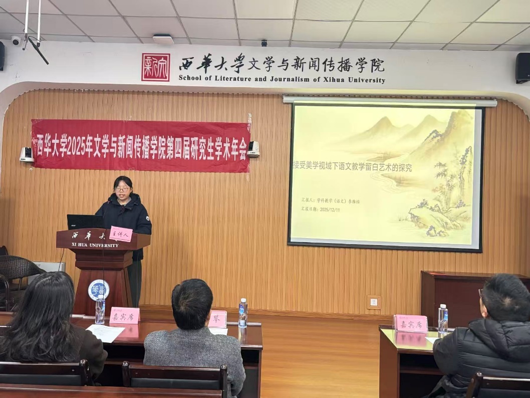 在学生代表发言环节,中国语言文学专业陈子涵、新闻与传播专业尹旭露、学科教学(语文)专业李维怡先后上台,结合自身研究经历,分享了学术探索过程中的思考与收获,彰显了文传学子笃实好学、积极进取的学术风貌。
