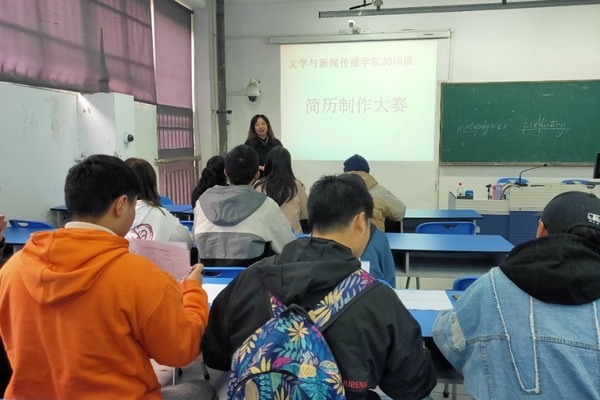 10月25日上午,18级汉语言文学专业举办了一场“简历制作大赛”。本次大赛于6A126教室举行,参加本次活动的有汉语言文学专业的全体同学及其辅导员徐薇老师。