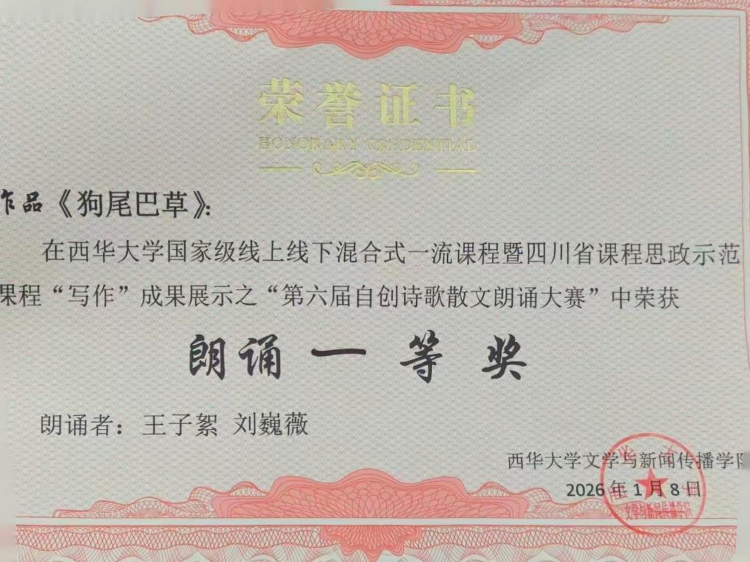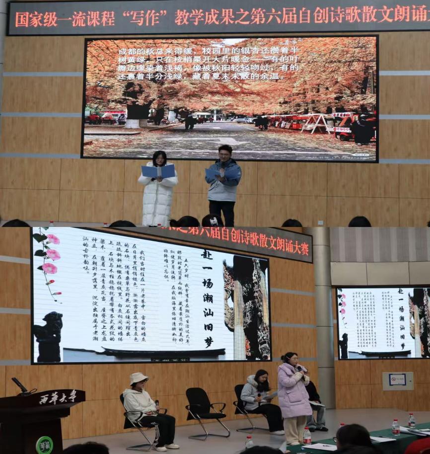 本次朗诵大赛不仅是西华大学文新学院国家级一流课程“写作”的教学成果一次生动展示,也为学生提供了文学创作与舞台表达相结合的综合实践机会。活动在热烈的掌声中圆满落幕,文学的温度与声音的力量将继续在学院传承与回荡