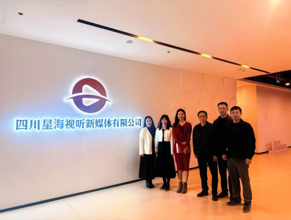 在四川星海视听新媒体有限公司,团队全面调研新媒体行业发展趋势与企业用人核心需求,重点围绕产教融合、实习实践基地共建、人才培养优化等内容交流,听取了企业关于强化实战教学、前沿技术培养、校企课程共建等方面的针对性建议。