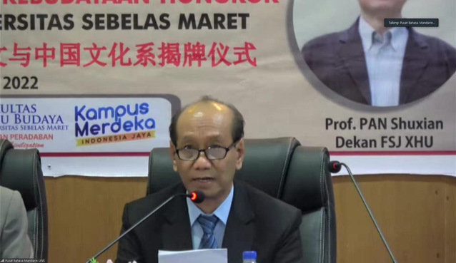 西华大学校长刘树根教授代表西华大学全体师生对三一一大学成功建立中文和中国文化系表示热烈祝贺。他在致辞中回顾了两校携手合作、共同发展的历程。西华大学与三一一大学共建的孔子学院于2019年3月正式落户梭罗,这是印尼的第七所孔子学院,也是中爪哇省的唯一一所孔子学院。在过去的三年里,孔子学院围绕国际中文教育、巴蜀文化与爪哇文化交流与研究、中印尼两国经济金融发展热点问题研究等方面开展了丰富多彩,特色鲜明和富有成效的工作,为实现两校的深入合作和民心相通打下了坚实基础。同时,两校不断加强和深化校际合作,在国际中文教育领域开展了密切而务实的合作。已建立了中文3+2专升本双学位项目和中文本科2+2双学位项目。未来两校将以中文本科专业为抓手,持续推进两校在教学、学术和科研的深入合作,为提升两校办学水平和教育国际化而不懈努力。