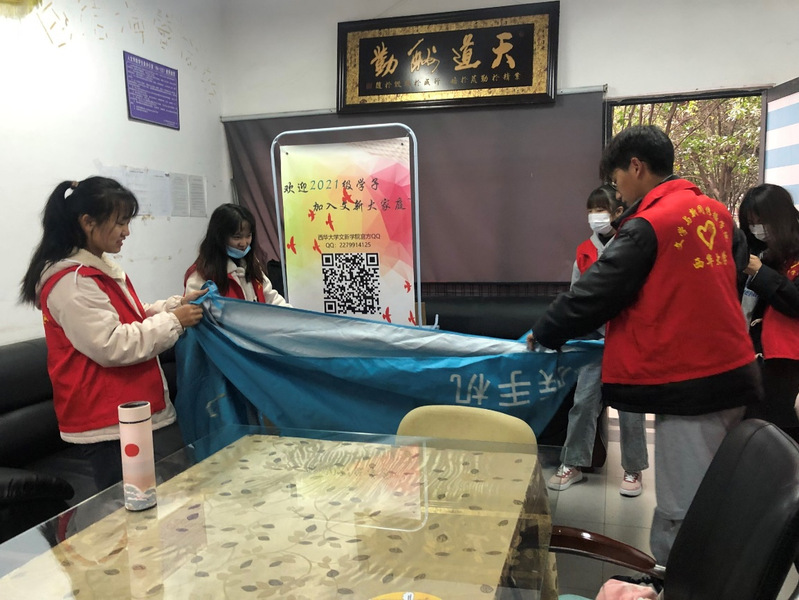 3月28日下午,文新学院青服队开展了策划已久的“女生节”互助箱活动。此次活动的目的是增加校园的友爱氛围,为大家提供便利。本次活动范围是第六教学楼对此,队员们分工明确,早早地进行了物资采购,做好了充分的准备。活动开始,队员们按时到达指定地点6A122集合后,便按照分工到各个楼层的男女卫生间,将卫生纸巾摆放在各个卫生间的洗手台面上,并在旁边附文写上“赠人玫瑰,手留余香”的活动简介,为同学们解决了困难,传递了爱心,增添了美好。