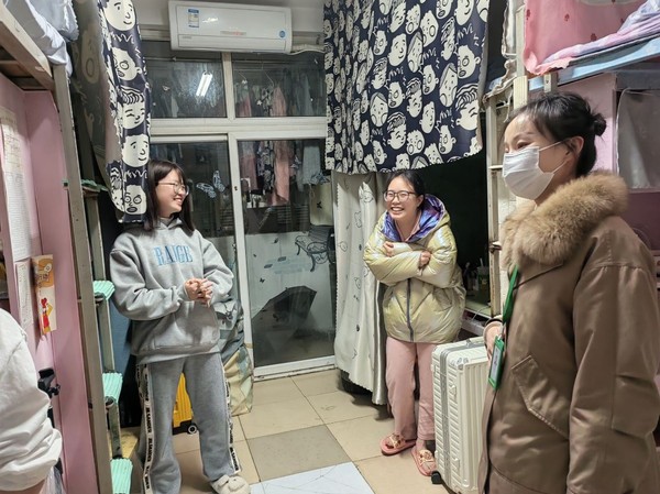走访中,辅导员们从安全与文明两个方面出发。在与同学们的交谈中,紧紧围绕防控疫情,提醒同学们不要私自出校、随时随地戴好口罩等;接着,以违规学生(私自使用违规电器,私拉乱接等)为例督促学生安全用电,文明住宿,教导学生注意个人行为,端正自己的思想。最后,辅导员告诫同学们一定要注意寝室和个人卫生,做到文明寝室,文明个人,文明大家。此外,此次走访寝室,辅导员们还对返校同学们在返校后的生活感想进行了收集。通过走访,辅导员了解到部分同学对于返校后的宿舍有些失望,或多或少出现问题,如:希望热水进德馨寝室等。对于这些问题,辅导员们第一时间找人处理解决,并认真听取了已返校同学的诉求,表示对同学们的需求会合理安排,会尽最大努力为同学们服好务,同学们纷纷表示理解。