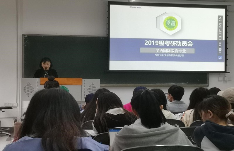 为进一步增进学生对考研相关情况的了解,提高同学们的备考能力,以及就毕业论文做提前的准备,2019级汉语国际教育专业于4月18日下午四点在辅导员廖秀美的组织下于6c-116开展了考研动员大会暨毕业论文专题讲解大会,此次会议邀请中文系副系主任樊洁老师作为主讲人。