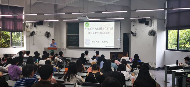 4月28日, 2019级汉语言文学专业举行了毕业论文暨考研答疑会。学院中文系系主任王燕飞老师就毕业论文和考研规划问题为同学们进行详细讲解与具体指导。