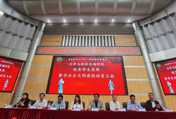 大会紧紧围绕优秀学生表彰和提倡毕业生文明离校主题展开。全体奏唱中华人民共和国国歌后,副院长王学东、副院长范佳、学院党委书记王莉分别宣读了2018级考研录取(升学)名单、2022届优秀毕业生名单、国家奖学金和国家励志奖学金获奖名单,并向取得优异成绩的同学表示诚挚的祝贺,叮嘱获得表彰的同学们在新的学习生涯与工作岗位中,传承学校校训精神,再创新篇章,为母校母院增光添彩,同时希望全体同学以获奖同学为榜样,在校期间积极拼搏,努力进取,再展文新学子风采。