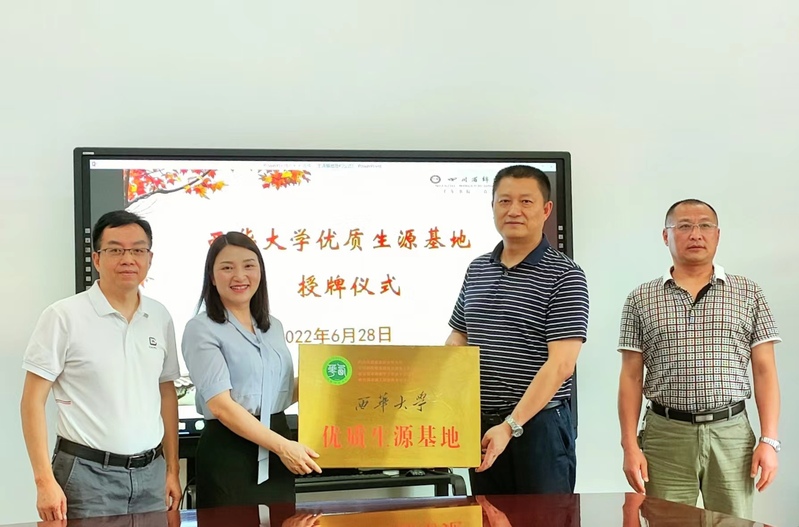 学院一行受到了绵竹中学校长唐世国等领导的热情接待,双方进行了亲切座谈,并举行了“西华大学优质生源基地”授牌仪式。