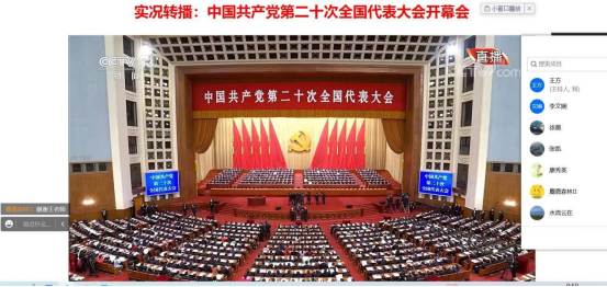 党的二十大是迈上全面建设社会主义现代化国家新征程、向第二个百年奋斗目标进军的关键时刻召开的一次十分重要的大会。当庄严的国歌声响起,师生们全体起立,无不感到心潮澎湃、激动万分。在聆听习近平总书记做报告时,师生边看边做好记录,不时以热烈的掌声回应大会的精彩报告。