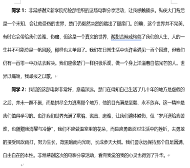 (图为部分同学观影感受)