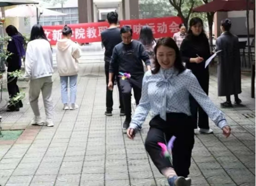 活动分为趣味体育活动和教职工摄影作品展两个板块。趣味体育活动包括跳绳、踢毽子、飞镖、投壶和排球赛五项。活动中,平日文质彬彬的教授博士们全身心投入到各个项目中,瞬间变身运动达人,一个个精神饱满,活力焕发。在一旁观战的师生高喊“加油”,喝彩声和助威声一浪高过一浪,热烈的气氛洋溢全场。活动充分发扬友谊第一、比赛第二、重在参与的精神。最后,学院按照成绩排名评出一、二、三等奖,并颁发奖状奖品。