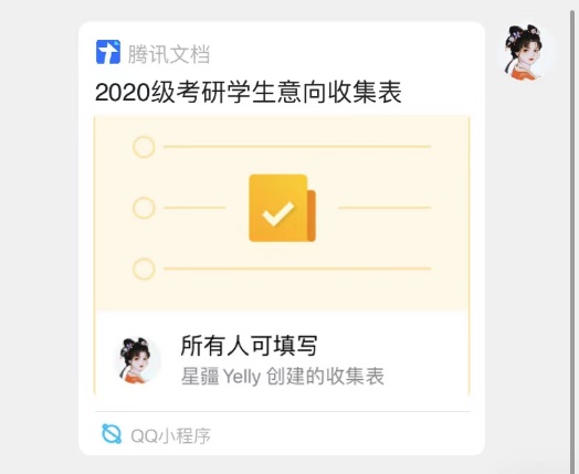 此次收集工作主要针对2020级汉语言文学、汉语国际教育、网络与新媒体三个专业的学生展开。意向收集表于9月26日在线上发布,由各班班委转发至班群,并通知有考研意向的学生进行填写。