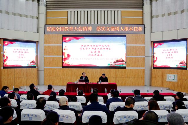 为深入学习贯彻习近平总书记关于教育的重要论述和全国教育大会精神,12月7日,我校在四教报告厅举行了“贯彻全国教育大会精神,落实立德树人根本任务”主题讲座。讲座邀请了北京师范大学学生工作部部长兼武装部部长王洛忠教授主讲,讲座由校党委副书记王小林主持。