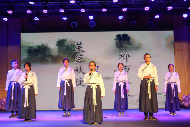 “鹿鸣吹笙”,出自《诗经·小雅·鹿鸣》,寓意着人文学院对2018级新同学到来的真诚欢迎。18级学前2班的同学别出心裁,将热门电视剧《延禧攻略》融入现代舞姿里,配合上节奏强烈的音乐,为大家带来一场视觉盛宴。在小品《上学那些事儿》里,18级汉文3班的同学带我们回到梦的起点,重温那青涩年华里的酸甜苦辣。学前教育科学系唐正军老师和他的学生带来《花间的邂逅》的表演,领大家共赏花海之美、多情之境。17、18级同学以动人的歌声唤醒了我们对爱情的最初回忆,一曲《等你下课》让我们在沉醉之余又不禁泛起一丝感伤。意犹未尽之时,话剧《席前》将我们从回忆中拉回,17级汉文2班的同学用精彩的表演为我们诠释了爱国的意义。