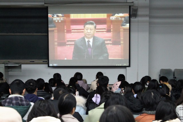 12月18日上午10:00,“庆祝改革开放40周年大会”在人民大会堂隆重举行。应学校党委安排和部署,人文学院组织师生集中观看了“庆祝改革开放40周年大会”直播。学院院领导及教师代表在6A-108集体观看学习,学生代表在6B-108认真收看庆祝改革开放40周年大会直播盛况,聆听学习习近平主席重要讲话精神。以此为学习契机,回顾改革40年的历史光辉,了解中国新时期发展道路。