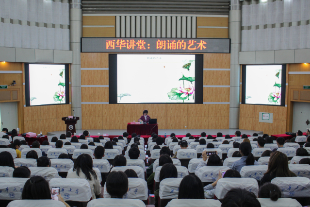 10月25日下午,人文学院在四教报告厅举办了以“朗诵的艺术”为主题的西华讲堂,本次西华讲堂特邀国家一级导演、一级播音员寒露担任主讲嘉宾。学院院长谢应光、副院长王学东以及人文学子参加了此次讲座,讲堂由谢应光院长主持。