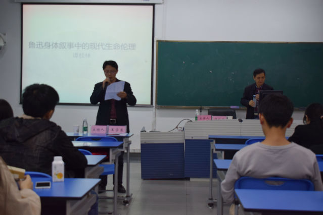 10月30日晚7:00,人文学院特邀南京师范大学教授、博导谭桂林在6A-126开展以“鲁迅的身体叙述及其生命伦理”为主题的学术讲座。人文学院副院长王学东、团委书记熊贤以及部分同学参加了此次讲座,讲座由王学东副院长主持。