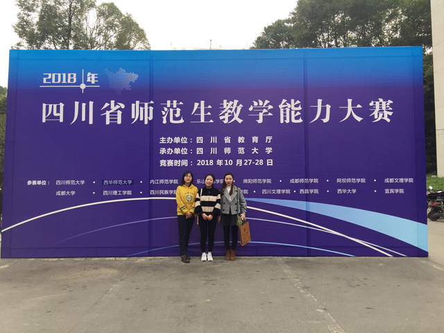 为提高师范学生教学技能,2018年10月27日,四川省师范生教学能力大赛在四川师范大学顺利举行。人文学院汉语言文学专业龚佳玉、学前教育专业陈国敏参加了本次讲课比赛。