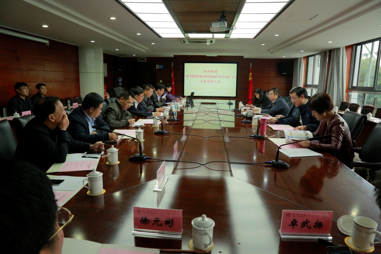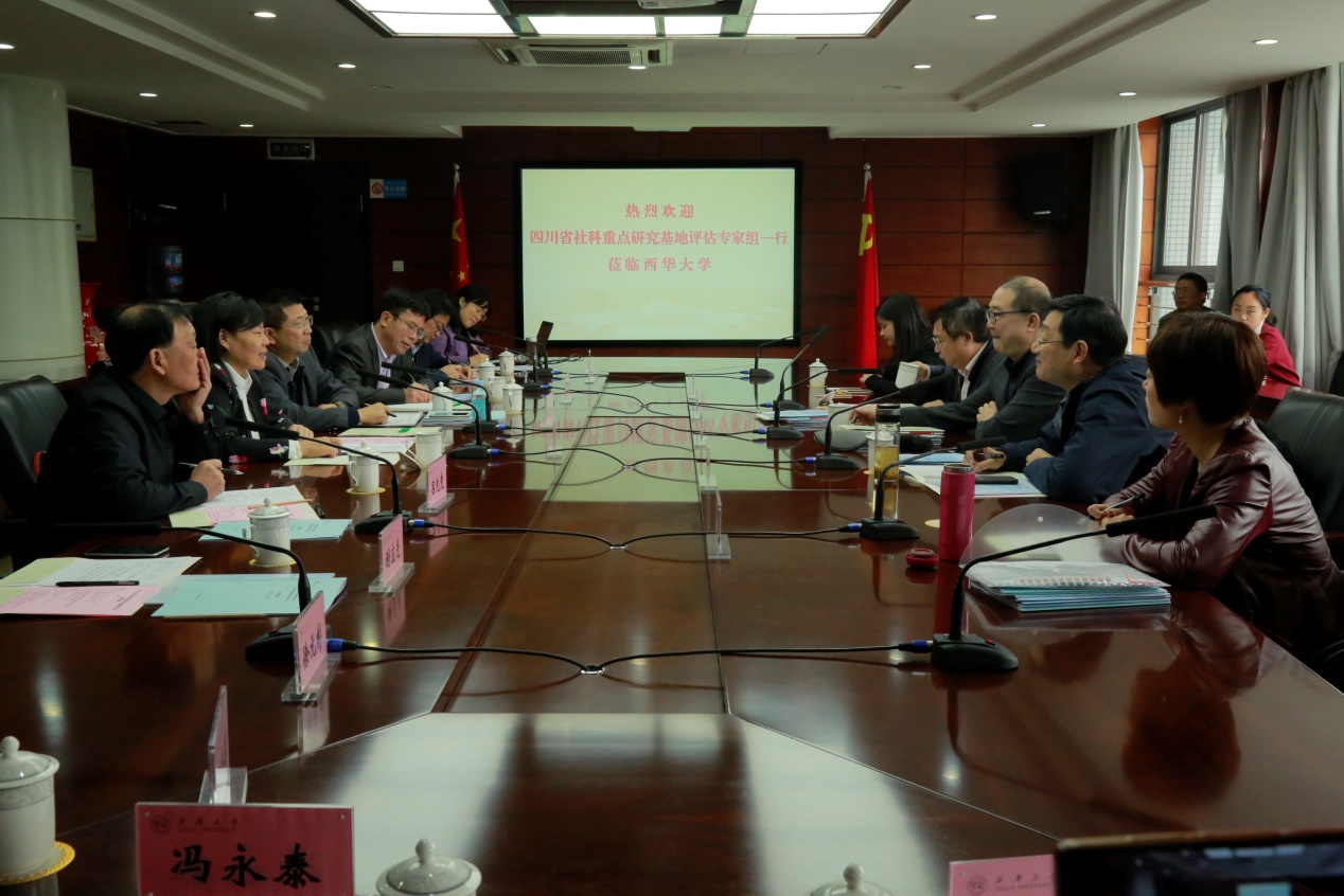 10月13日上午,由省社科联规划办主任黄兵、副主任赵静,四川大学社会科学研究处处长姚乐野、西南民族大学发展规划与学科建设处处长刘兴全、省社科联联规划办刘莎一行5人组成的省社科联评估专家组来到西华大学,对四川省社科重点研究基地——地方文化资源保护与开发研究中心进行三年一轮的省级重点研究基地例行评估。学校党委书记边慧敏、校长刘清友、副校长王政书出席评估会。