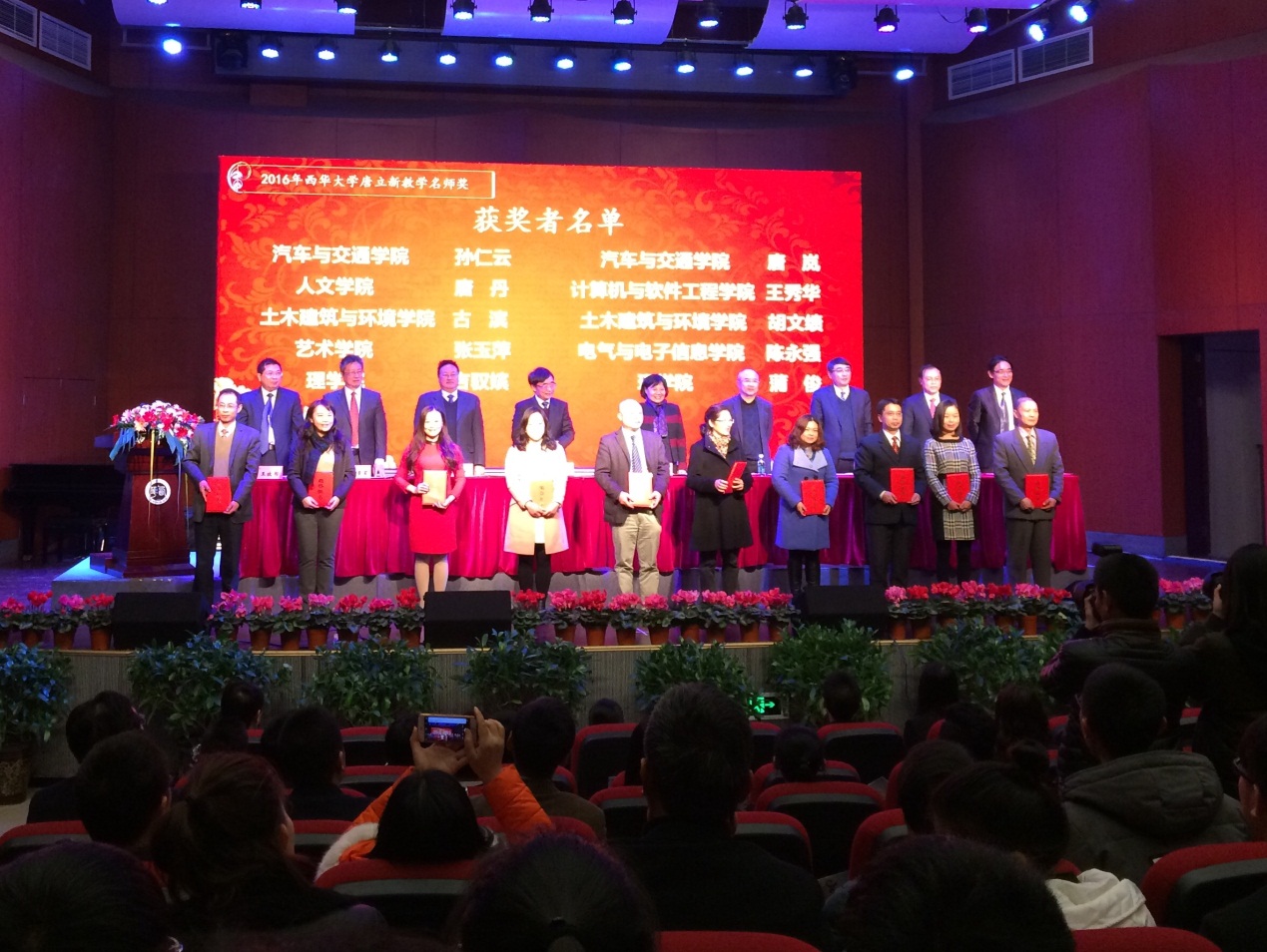 2016年12月27日晚,西华大学首届唐立新奖教金、奖学金颁奖典礼在艺术大楼音乐厅隆重举行。新尚集团董事长兼总裁唐立新、全体校领导、相关职能部门、学院负责人、获奖师生及其他师生代表出席颁奖典礼。