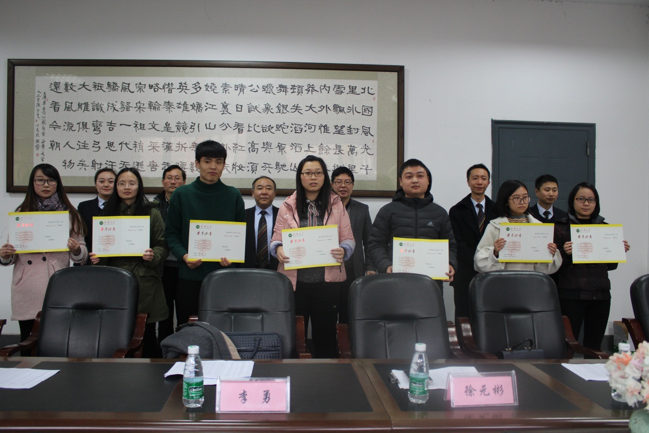 12月12日下午4:00,西华大学第二届“律政公证”奖学金颁奖仪式在人文学院会议室举行。成都市律政公证处主任李勇,西华大学学工部、学生工作处部长王大清,人文学院党委书记兼副院长徐元彬,成都市律政公证处副主任李君等出席颁奖仪式,仪式由人文学院副院长冯永泰主持。