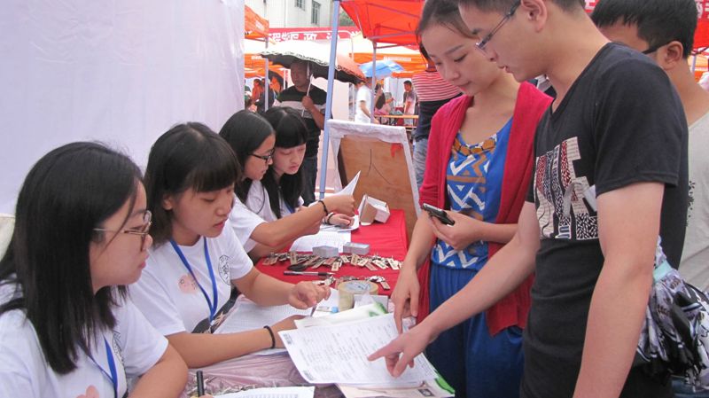 为了迎新,学院成立了志愿者服务队团队。志愿者们分工明确,迎新工作忙碌而有序。虽是阴雨绵绵的天气,但志愿者们的热情丝毫不减,他们身穿印有“西西”“华华”图案的白色文化衫,印有“大人哥”“小文妹”心形贴纸的logo,代表着学院对新同学的欢迎。每一个志愿者都认真地核对新生的注册信息,向新生和家长讲解报名注册流程并解答关于住宿、学费等问题,同时帮助家长们将行李放到安置点,细心地为他们奉上一杯热水,白色的身影穿梭于迎新各个地点。“拿着两个大箱子,本来想着不好搬,幸亏有志愿者们的帮忙,”一位来自广东的家长感谢道。