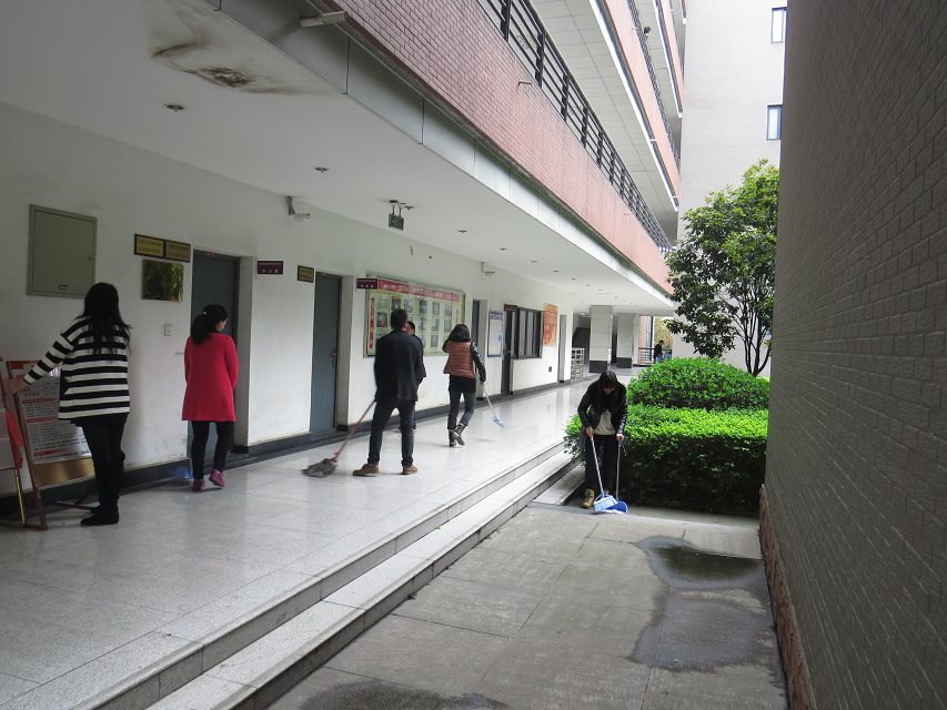 为响应《关于机关党组织和在职党员到社区报到开展志愿服务的意见》(川组发〔2013〕18号)每季度最后一周的周末为“党员义工日”的号召,3月29日下午14:00,由学院党委副书记兼副院长张雪征带领,全体辅导员组成的“党员义工队”开展了党员义工日活动,活动内容主要是对学院办公区进行打扫。