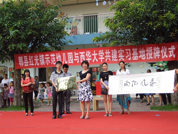 6月26日上午,西华大学人文学院与郫县红光镇示范幼儿园共建学前教育专业学生实习与就业基地签字授牌仪式在该幼儿园举行。人文学院副院长冯永泰、教学办主任曾海田、教育科学系主任曾英一行及郫县教育局负责人、红光镇示范幼儿园负责人参加了仪式。