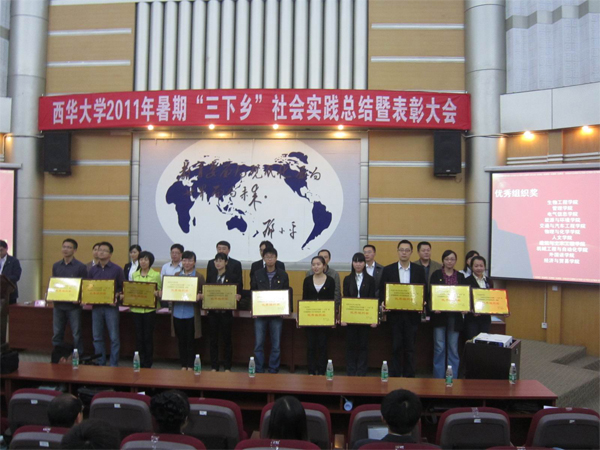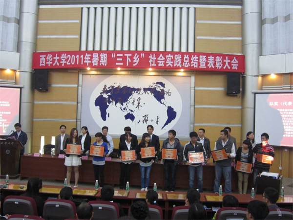 9月27日,西华大学2011年暑期“三下乡”社会实践总结及表彰大会在四教报告厅隆重举行,来自各个学院以及校级学生组织的“三下乡”社会实践团代表参加了大会。