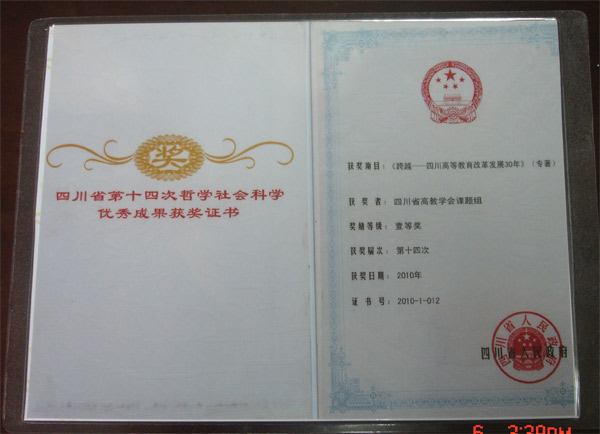 2011年6月7日,四川省高等教育学会就四川省高教学会课题组《跨越——四川高等教育改革发展30年》(专著)(四川科技出版社 2008年11月)获得四川省十四次哲学社会科学一等奖举行座谈会,我院施维树教授参加了座谈会,并就四川省高等教育研究的现状和当前应研究的重点作了发言。据悉,我院教师施维树、冯永泰系四川省高教学会课题组成员,主要承担了对30年来四川高等教育改革发展中高校党建、思想政治工作和高校教师队伍建设的研究任务。