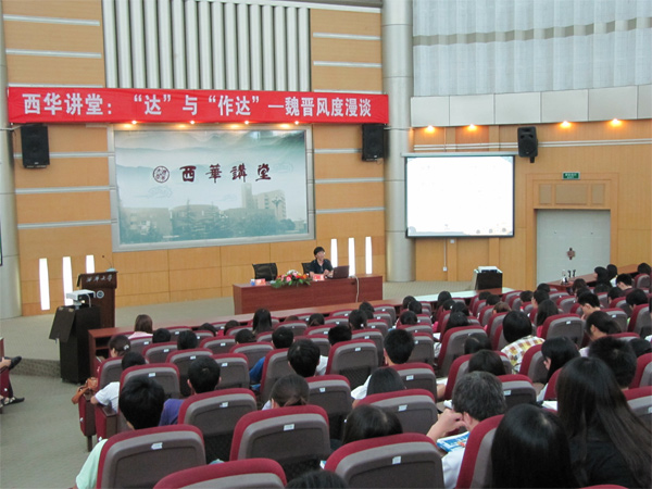 6月1日下午2:30,西华讲堂在四教报告厅再次开讲。应人文学院邀请,四川大学教学名师、文学与新闻学院硕士生导师王红教授给西华师生带来了一场题为“‘达’与‘作达’— 魏晋风度漫谈”的主题讲座。讲座由校团委主办,人文学院承办。人文学院副院长潘殊闲教授主持讲座。