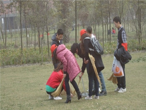 此次活动的主要任务是清洁新图书馆人工湖周围的草坪。中午12点,人文学院与各兄弟学院的青年志愿者服务队队员整队集合,带着扫帚、铲子、簸箕、垃圾桶等工具精神抖擞地前往人工湖畔。任务分配后,大家便纷纷行动起来。草坪上的垃圾袋、枯树枝、甚至瓜子壳都被队员们一丝不苟地清理干净。在队员们的共同努力下,人工湖草坪上的垃圾全部被清理干净,夺目的绿意! 此次清洁校园活动不仅加强了人文学院与兄弟学院同学间的友谊,更有力地弘扬了“雷锋精神”。