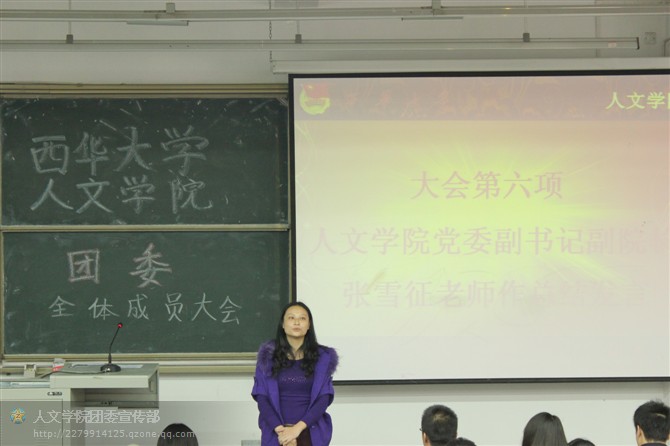 10月19日中午,人文学院团委在6B-207隆重举行全体成员大会,院党委副书记兼副院长张雪征老师、团委书记王馨老师出席大会。
