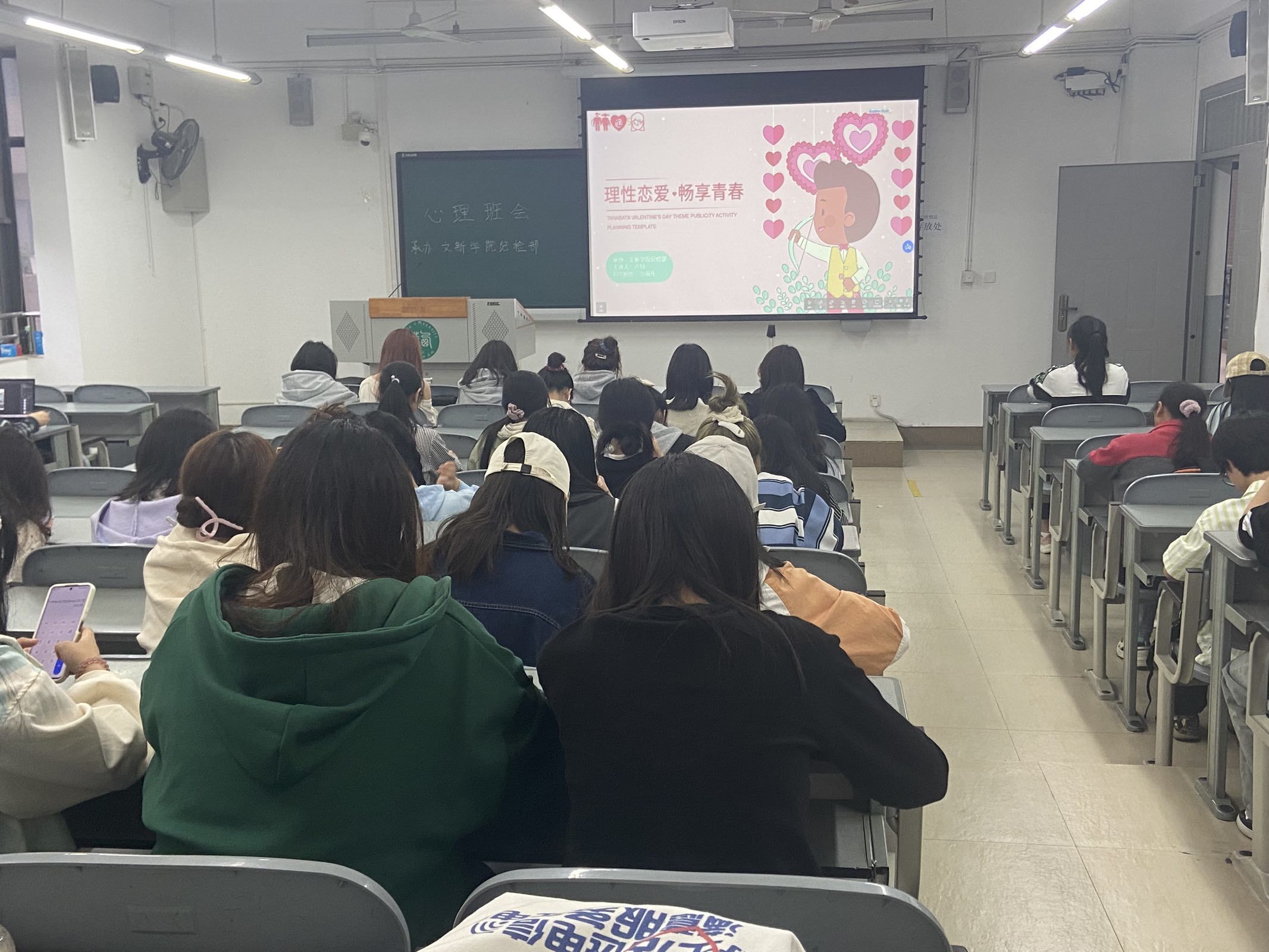 此次班会宣讲内容主要针对大部分在大学生群体中有关身材焦虑、校园暴力、恋爱心理等常见的问题,通过以PPT解说、播放视频以及组织同学们积极有序地参加趣味小测试和游戏互动等方式,让同学们能够更加生动、深刻的学习掌握到有关心理健康知识。在心理测试环节,同学们认真参与小测试,了解自己的心理状况。班会还设置了游戏环节“你比我猜”,同学们积极参与游戏,提升了同学们的参与感。