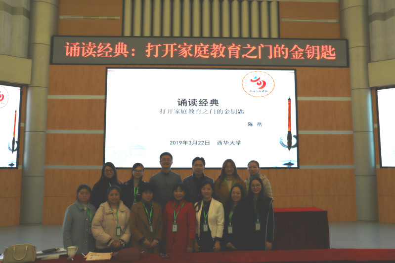 3月22日下午,由西华大学幼儿园与人文学院共同承办的《诵读经典:打开家庭教育之门的金钥匙》家庭教育讲座在四教报告厅顺利举行。本次讲座特邀成都电视台少儿频道总监陈岳担任主讲人。
