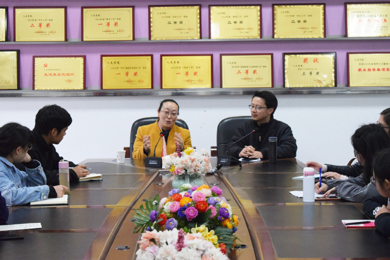 4月3日,人文学院在6A-108召开以“文学创作与公文写作兼备如何可能”为主题的座谈交流会。本次座谈交流会特邀重庆三峡学院文学院李晓华教授担任嘉宾,学院学生记者团成员、团委学生会学生骨干参加本次了此次座谈交流会,学院副院长王学东担任主持人。