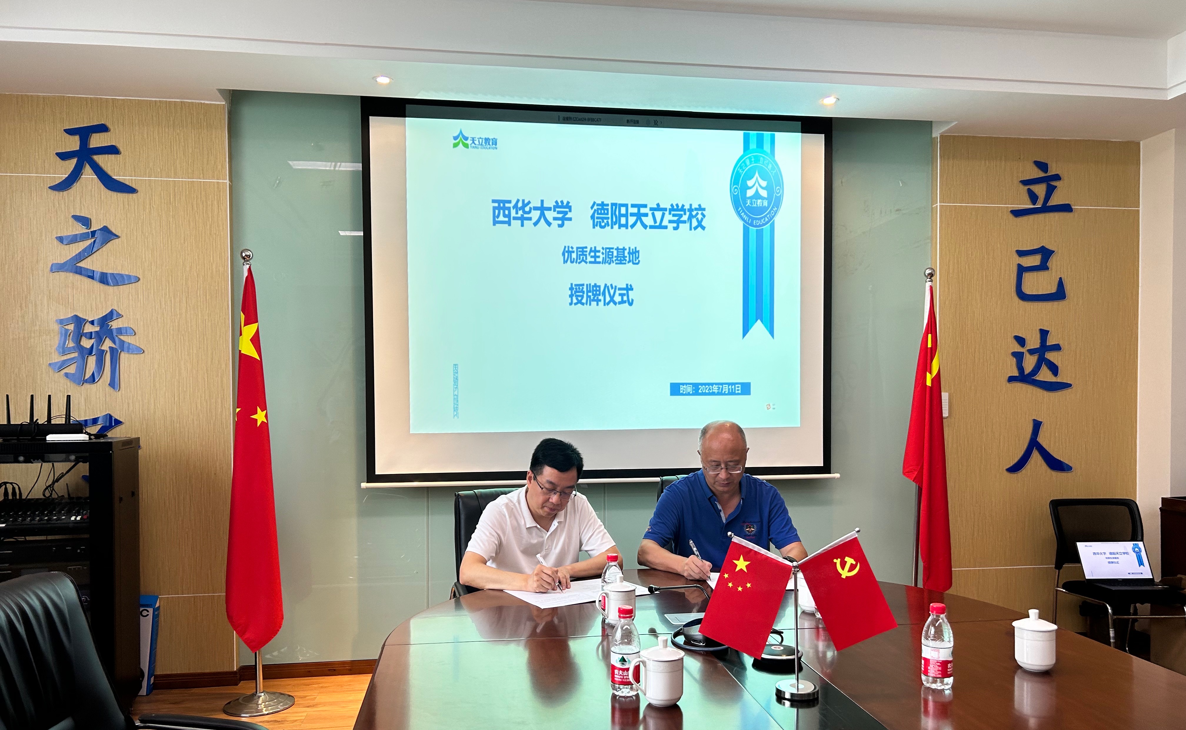 宣讲会结束后,双方进行了合作洽谈,徐攀代表西华大学同德阳天立学校签署了优质生源基地合作协议书,并授予德阳天立学校“西华大学优质生源基地”牌匾。他表示授牌仪式是两校深化合作的开始,希望两校师生在未来能常来常往,加强沟通交流,希望未来能有更多的德阳天立学校的学子进入西华大学学习深造。