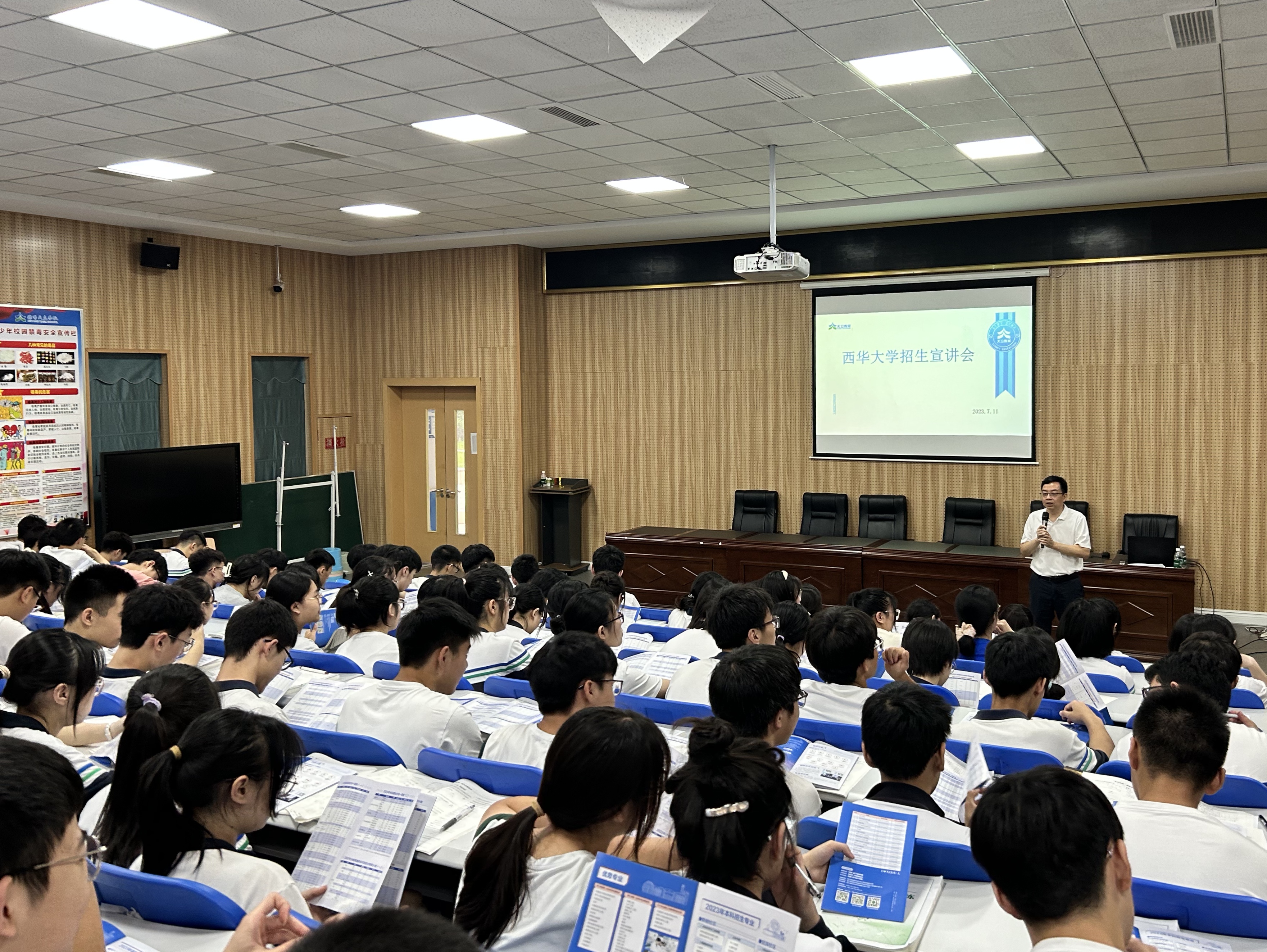 观看了学校、学院宣传片后,徐攀结合宣传片内容就西华大学、bw西汉姆联的基本情况、发展目标、招生政策、专业设置等内容为德阳天立学校的高三学子进行了详细介绍。王方则以“传承发展中华优秀传统文化,西华等你来”为题,从当下的中华传统文化热、中华优秀传统文化在西华、传承发展中华优秀传统文化,西华等你来三个方面给同学们进行了宣讲。叶茂则以“到西华来,成就未来新媒体人!”为题,从什么是未来新媒体?我院传媒系发展历程、专业设置、毕业生就业以及自身经历等方面进行了讲解,让同学们对学院各专业情况有了更进一步的认识和了解,叮嘱同学们明确目标、踏实奋斗。